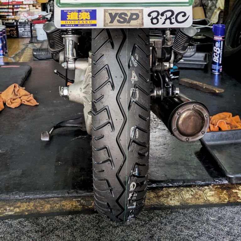 ふと気づいたのですが、フロントタイヤ3.25-19 54Hはチューブレス仕様でした。